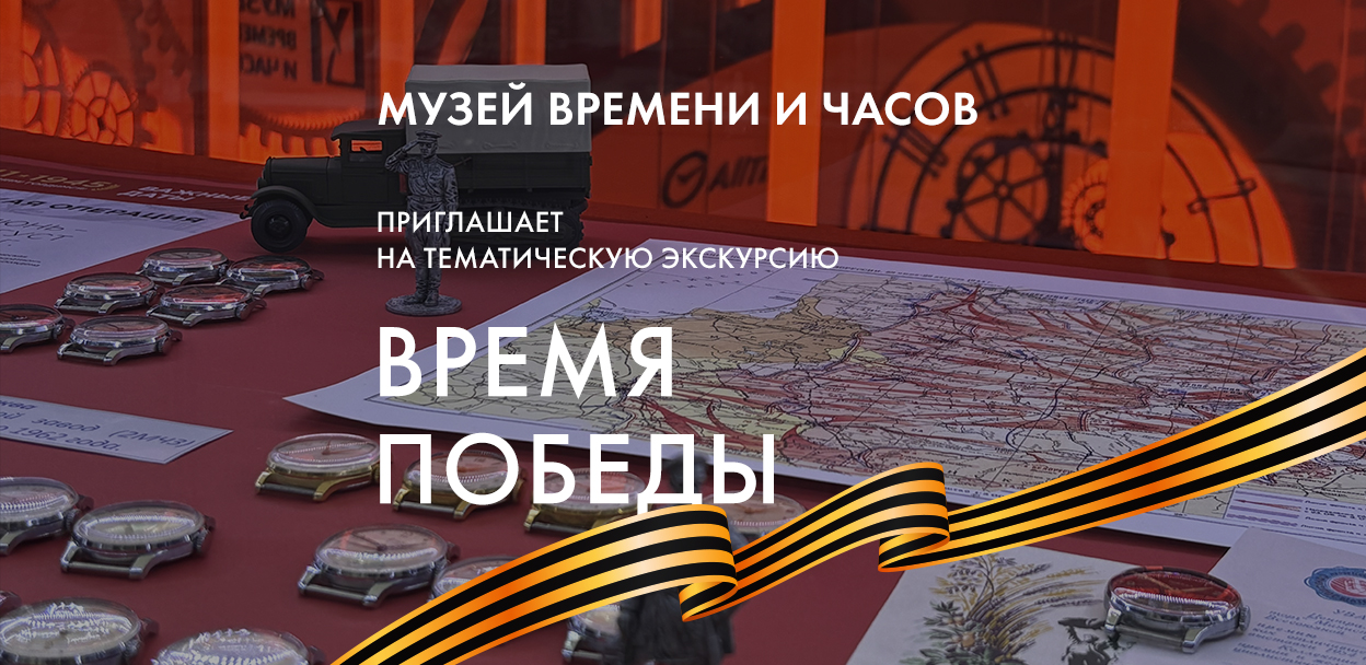 Во время экскурсии вы увидите наградные часы 1941-1945 годов, услышите истории о жизни и подвигах их владельцев, познакомитесь с обширной коллекцией подарочных наручных часов, которые выпускались на советских заводах к 30-, 40- и 50-летию Победы, а также узнаете о самых массовых советских часах «Победа». Отдельное внимание во время экскурсии будет уделено современным лимитированным часам, выпущенным специально к 80-летнему юбилею Победы.